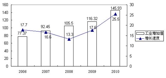 2、145亿: 2010年全县工业增加值145.93亿元,同比增长25.5%,增幅比去年同期快7.9个百分点,比GDP快9.9个百分点。其中,规模以上工业增加值为114.4亿元,同比增长30.2%,高于全市平均水平(27.4%)2.8个百分点,增幅全市排第三位。