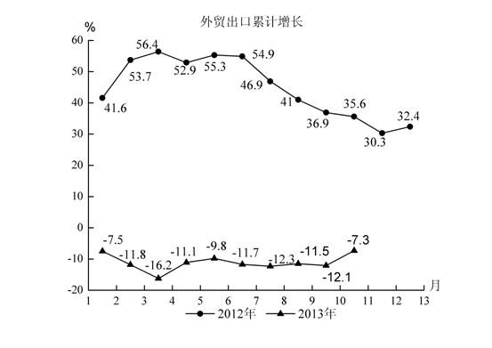 1-10月,全县外贸出口总额23.26亿美元,下降7.3%,降幅创年内最低水平;外贸进口总额11.07亿美元,增长4%,是年内自2月份以来首次正增长。全县外贸进出口总额34.33亿美元,下降3.9%,分别比1-9月、1-8月、1-7月收窄5.2个、5个和1.9个百分点,显示外贸进出口形势逐步回暖。