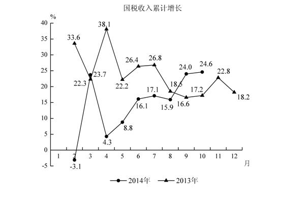 (五)国税收入增长继续提速。1-10月,全县完成国税收入21.52亿元,增长24.6%,增幅创年内新高,增幅与上年同期和1-9月相比,分别提高7.4个和0.6个百分点。主要是受两大主体税种大幅增长的强劲拉动,其中增值税15.12亿元,增长20.1%;企业所得税6.11亿元,增长37.3%。