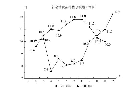 3、社会消费品零售总额123.82亿元,增长10%,增幅比上年同期下降1个百分点。