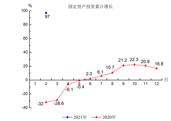 2.固定资产投资额同比增长97%,比2019年1-2月增长33.9%,两年平均增速为10.1%。