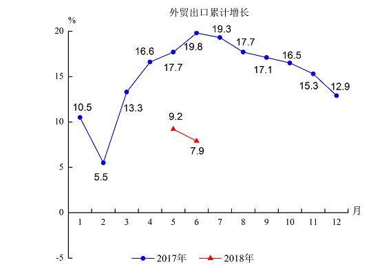 11.1-6月外贸出口85.32亿元,增长7.9%,增幅比去年同期回落11.9个百分点。