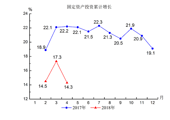 2.固定资产投资额增长14.3%,增幅比去年同期回落7.9个百分点。
