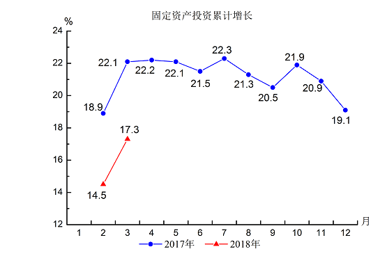 3.固定资产投资增长17.3%,增幅比去年同期回落4.8个百分点。