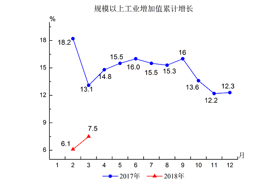 2.规模以上工业增加值增长7.5%,增幅比去年同期回落5.6个百分点。