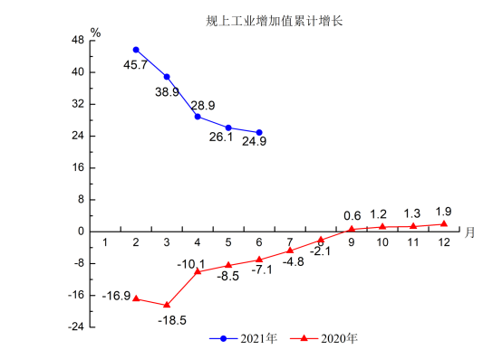 2.规模以上工业增加值131.53亿元,同比增长24.9%,比2019年上半年增长16.1%,两年平均增速为7.7%。