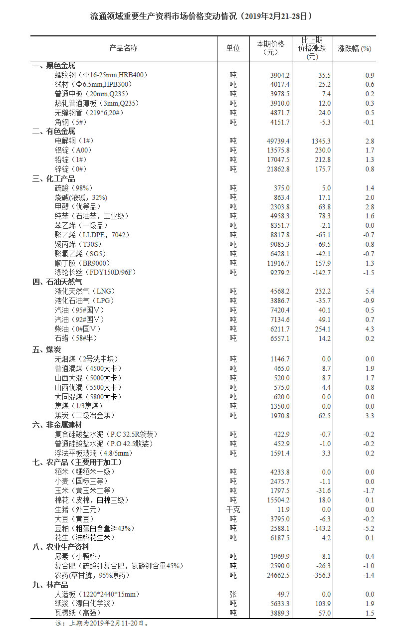 据对24个省(区、市)流通领域9大类50种重要生产资料市场价格的监测显示,2019年2月下旬与2月中旬相比,26种产品价格上涨,16种下降,8种持平。