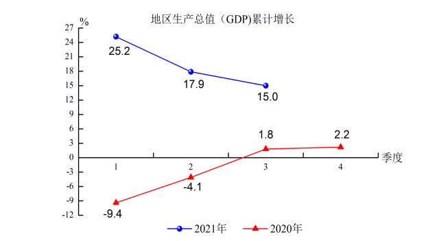 1.据市统计局初步核定,全县GDP 524.8亿元,同比增长15%,比2019年前三季度增长17%,两年平均增长8.2%,比上半年两年平均增速提高1.9个百分点。