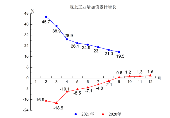 3.规上工业总产值同比增长27.4%,比2019年前三季度增长30.6%,两年平均增长14.3%,比上半年两年平均增速提高2.2个百分点。规上工业增加值同比增长19.5%,比2019年前三季度增长20.2%,两年平均增长9.6%,比上半年两年平均增速提高1.9个百分点。