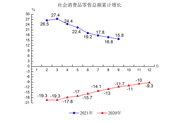 5.社会消费品零售总额237.85亿元,同比增长15.8%,比2019年前三季度增长2.2%,两年平均增长1.1%,比上半年两年平均增速提高0.8个百分点。