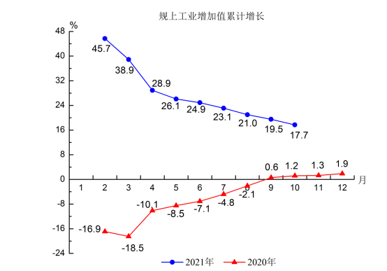 1.规模以上工业增加值同比增长17.7%,比2019年1-10月增长18.9%,两年平均增长9%。