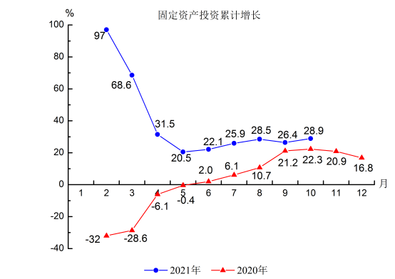 2.固定资产投资同比增长28.9%,比2019年1-10月增长57.7%,两年平均增长25.6%。