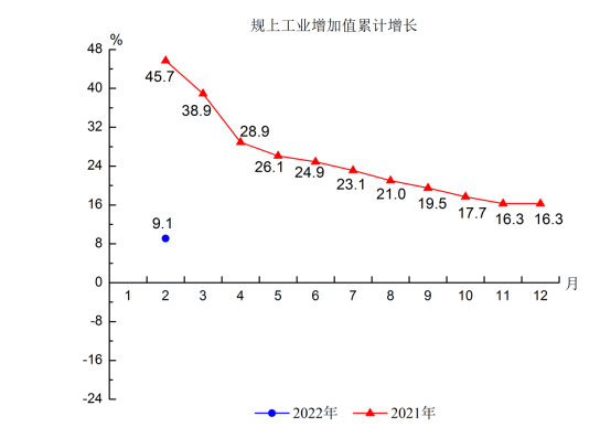1.工业生产基本平稳,重点行业增长稳固支撑。1-2月,全县规上工业总产值增长17%,较2021年同期两年平均增速提高5.4个百分点。全县规上工业增加值增长9.1%,较2021年同期两年平均增速回落1个百分点。增加值前五大行业占比有所提高。全县工业33个大类行业中,增加值排名前五行业合计增长7.8%,对全县规上工业增加值贡献率为51.7%;占全县规上工业增加值的59.7%,占比同比提高1.4个百分点;其中,计算机、通信和其他电子设备制造业(10.3%),电气机械和器材制造业(10.1%),橡胶和塑料制品业(20.7%)增加值增速均高于全县平均水平;金属制品业增加值下降13.3%;非金属矿物制品业增加值增长5.2%。1-2月,民营企业实现规上工业增加值同比增长9.7%,高出全县平均水平0.6个百分点;拉动全县规上工业增加值增长6.2个百分点,占全县规上工业增加值64.5%,比重同比提高4个百分点。重点企业生产增长较快,稳固支撑作用突出。43家重点企业产值合计增长26.3%,拉动全县规上工业总产值增长9.9个百分点,对全县规上工业总产值增长的贡献达52.1%。
