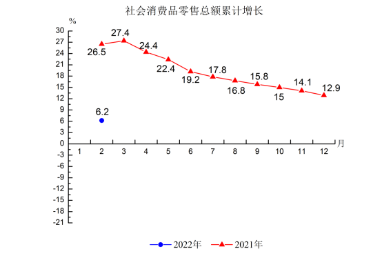 4.消费品市场平稳发展,住宿和餐饮业持续恢复。1-2月,全县实现社会消费品零售总额54.65亿元,同比增加3.22亿元,增长6.2%,比2021年同期两年平均增速提高5.1个百分点。分限上限下看,限下消费品零售总额占比高达九成。限上消费品零售总额5.32亿元,同比增长27.8%,占全县社会消费品零售总额的9.7%;限下消费品零售总额49.33亿元,同比增长4.3%,占全县社会消费品零售总额的90.3%。分行业看,限上餐饮业增长较快。限上批发业、零售业、住宿业、餐饮业分别实现零售额0.19亿元、1.93亿元、0.04亿元、0.42亿元,同比分别下降11.2%、增长14.6%、22.8%和89.1%。