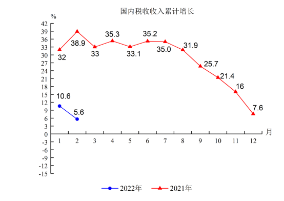 5.国内税收收入19.91亿元,同比增加1.06亿元,增长5.6%,比2021年同期两年平均增速回落8.9个百分点;总量居第5位,增速居第4位。