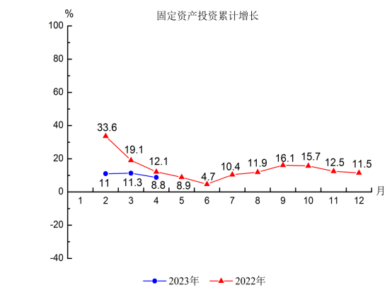 2.固定资产投资额增长8.8%,比1-3月回落2.5个百分点;总量居第4位,增速居第3位。工业投资增长23.9%,比1-3月提高2.1个百分点;总量居第4位,增速居第5位。