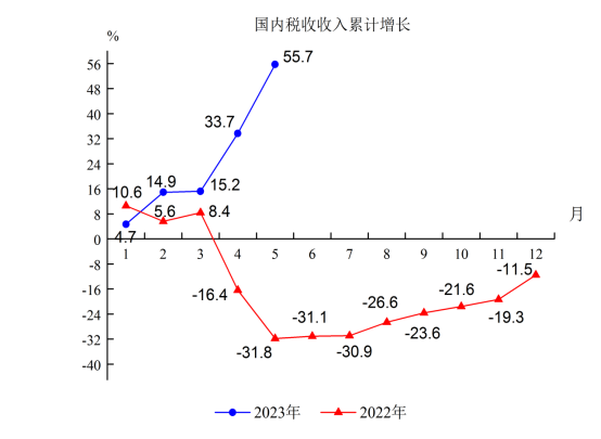 5.国内税收收入51.81亿元,增长55.7%,比1-3月提高40.5个百分点;总量居第5位,增速居第2位。
