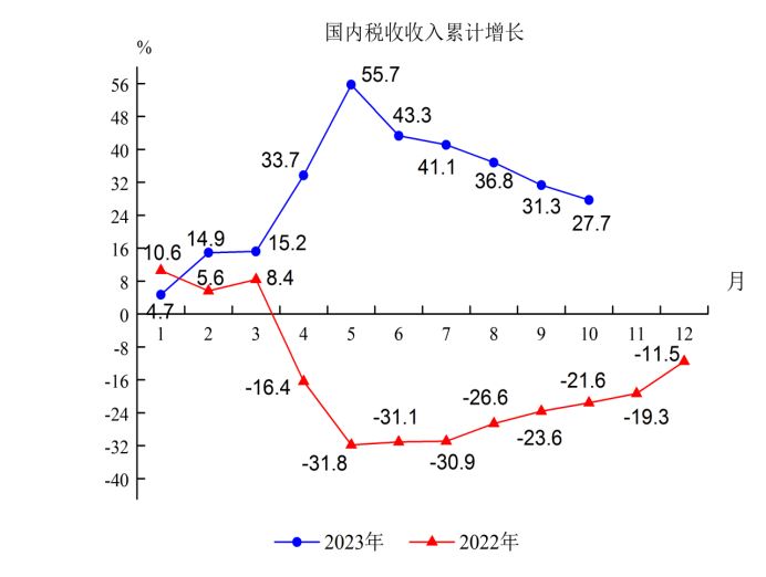 5.国内税收收入96.9亿元,增长27.7%,比前三季度回落3.6个百分点;总量居第5位,增速居第2位。