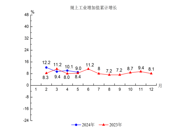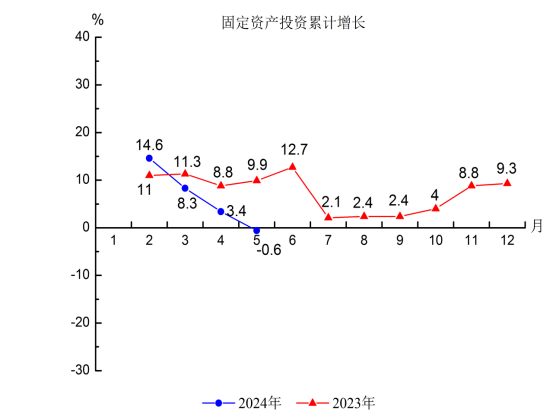 2.部分领域投资增长乏力。1-5月基础设施和建安投资降幅扩大,分别下降8.1%、5.8%,降幅比1-4月扩大7.7个、3.1个百分点。