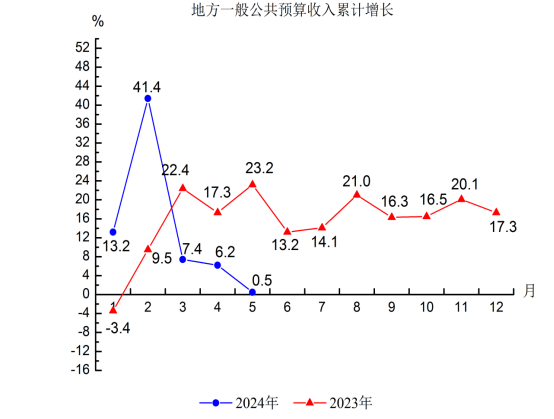 4.一般公共预算收入30.67亿元,增长0.5%,比1-4月回落5.7个百分点,总量居第1位(惠城区数据按区本级计),增速居第6位。