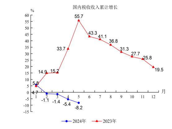 5.国内税收收入47.58亿元,下降8.2%,降幅比1-4月扩大2.8个百分点,总量居第5位,增速居第4位。