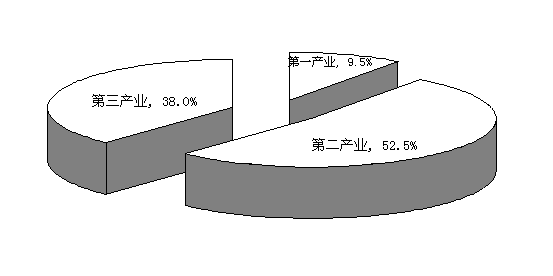 据市统计局核定,2013年全县地区生产总值(GDP)445.34亿元,按可比价格计算,同比增长12.5%(以下简称增长)。其中,第一产业增加值42.35亿元,增长3.8%;第二产业增加值233.64亿元,增长15.5%;第三产业增加值169.34亿元,增长10.0%。三大产业结构由2012年的9.7:53.1:37.2调整为9.5:52.5:38.0。人均GDP42196元,增长11.9%,超过全国平均水平。