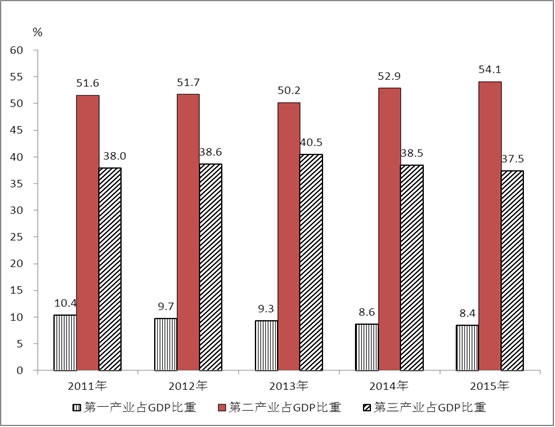 图2 2011-2015年中文博彩平台地区生产总值构成