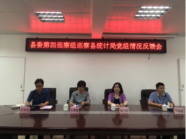 根据县委巡察工作部署,7月24日上午,县委第四巡察组在县统计局召开巡察情况反馈会。县委巡察办主任、县纪委常委、监委委员、县委巡察工作领导小组成员宋柳媚同志,县委第四巡察组组长林巧玲同志、副组长张伟强同志及其他工作人员,县纪委驻政府系统纪检组负责人李振平同志,统计局全体干部职工及各镇(街道、管委会)统计站负责人共40多人参加了会议。会议由县统计局党组书记、局长卢卓炜同志主持。
