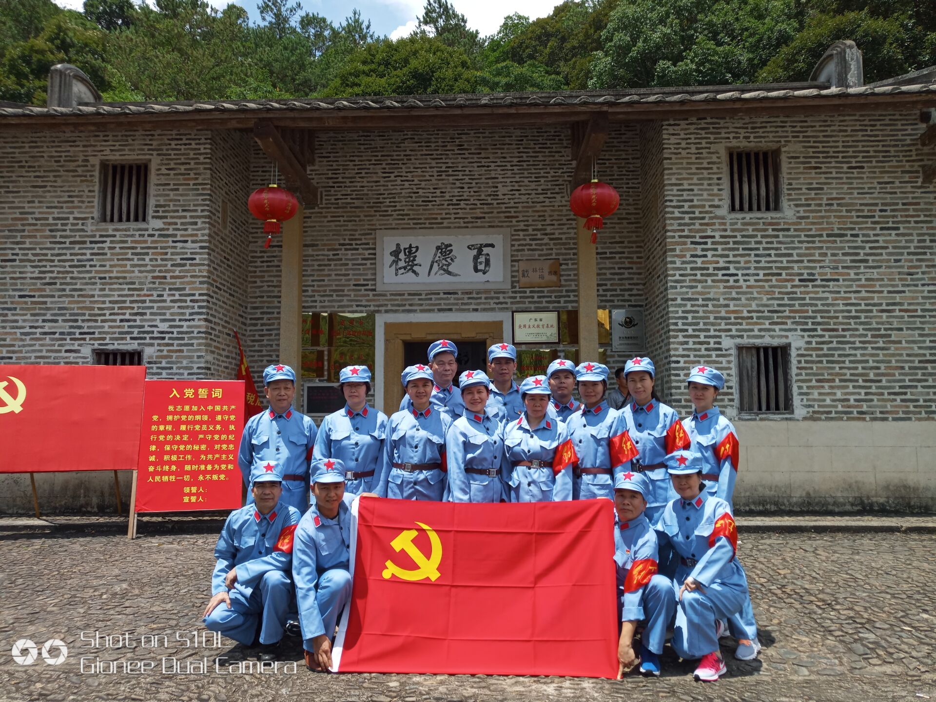 (革命老区百庆楼前合影)
