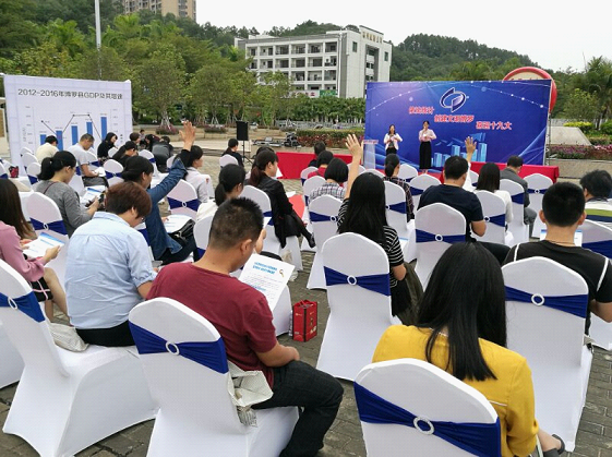 10月19日上午,县统计局在东山公园北广场举行了以“依法统计·创建文明中文博彩平台·喜迎十九大”为主题的宣传活动。活动包含了两部分内容,一是中文博彩平台十八大经济社会发展成就展览,二是有奖问答。活动由县统计局林艳云副局长主持,县统计局全体干部职工及18个乡镇(管委会)统计员共约70人参加了本次活动。简明精致的图表展板和热闹的场面吸引了众多居民纷纷驻足观看,取得了良好的宣传效果。