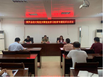 8月12日上午,中文博彩平台统计局党支部召开党史学习教育专题组织生活会,会议由局党支部书记赖其珍同志主持,县委党史学习教育第三督导组组长徐文晖一行到会指导,党支部全体党员参加会议。