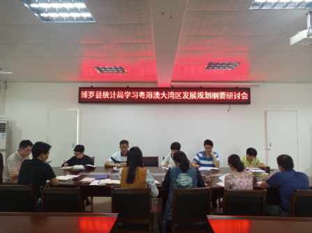 为继续深入学习贯彻《粤港澳大湾区发展规划纲要》,迅速兴起学习贯彻热潮,切实把思想和行动统一到中央对推进粤港澳大湾区建设的部署要求上来,县统计局于4月10下午召开理论学习中心组扩大会议,专题研讨《粤港澳大湾区发展规划纲要》,县统计局班子成员、各股室(中心)负责人参加研讨会。