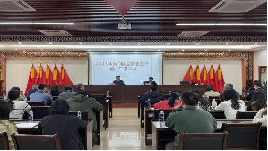 为进一步做好2024年第四季度农业生产统计工作,12月5日上午,县统计局联合县农业农村局召开2024年第四季度农业生产统计工作会议。县统计局副局长张延风、县农业农村局副局长李育辉出席会议并作讲话,县农业农村局、县统计局相关工作人员、各镇(街)农办主任和农业统计工作人员共40余人参加会议。