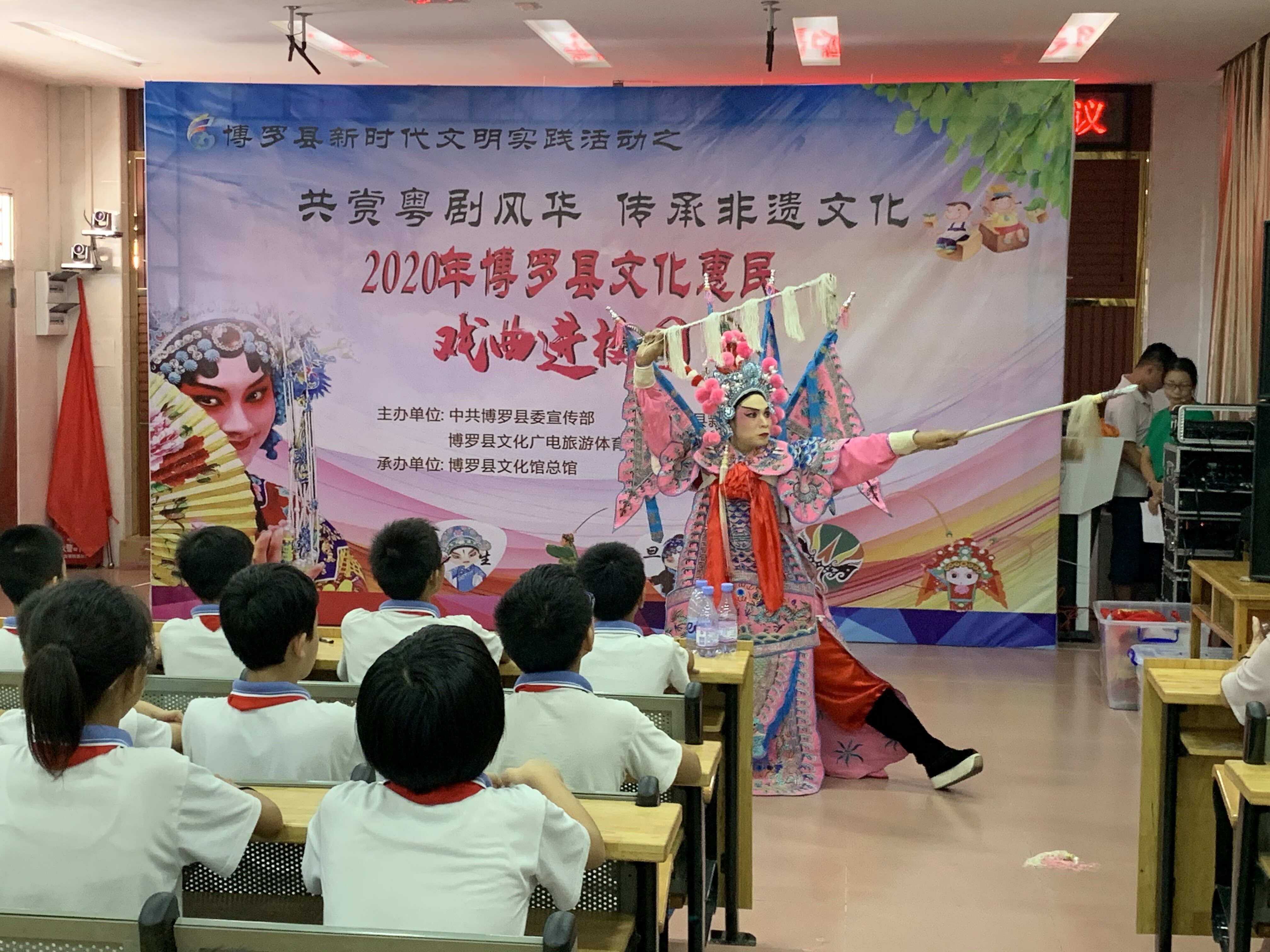 9月16日-17日,中文博彩平台2020年“戏曲进校园”活动在罗阳中心小学、福田中心小学进行。