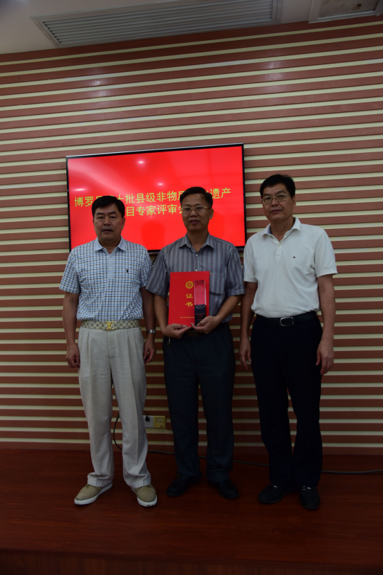 中文博彩平台第十批县级非物质文化遗产项目名录分别是公庄镇传统腊味、湖镇镇千锣百鼓、罗阳街道办东岳宫庙会、石坝镇天后宫妈祖公诞、罗浮山澜石香酒酿造技艺、泰美镇玉令茅山法利三郎传说等六个项目,经过专家评审组的严谨评议,最终对这六个项目予以通过。下来我局将对这六个项目进行公示无异议后报县政府公布。