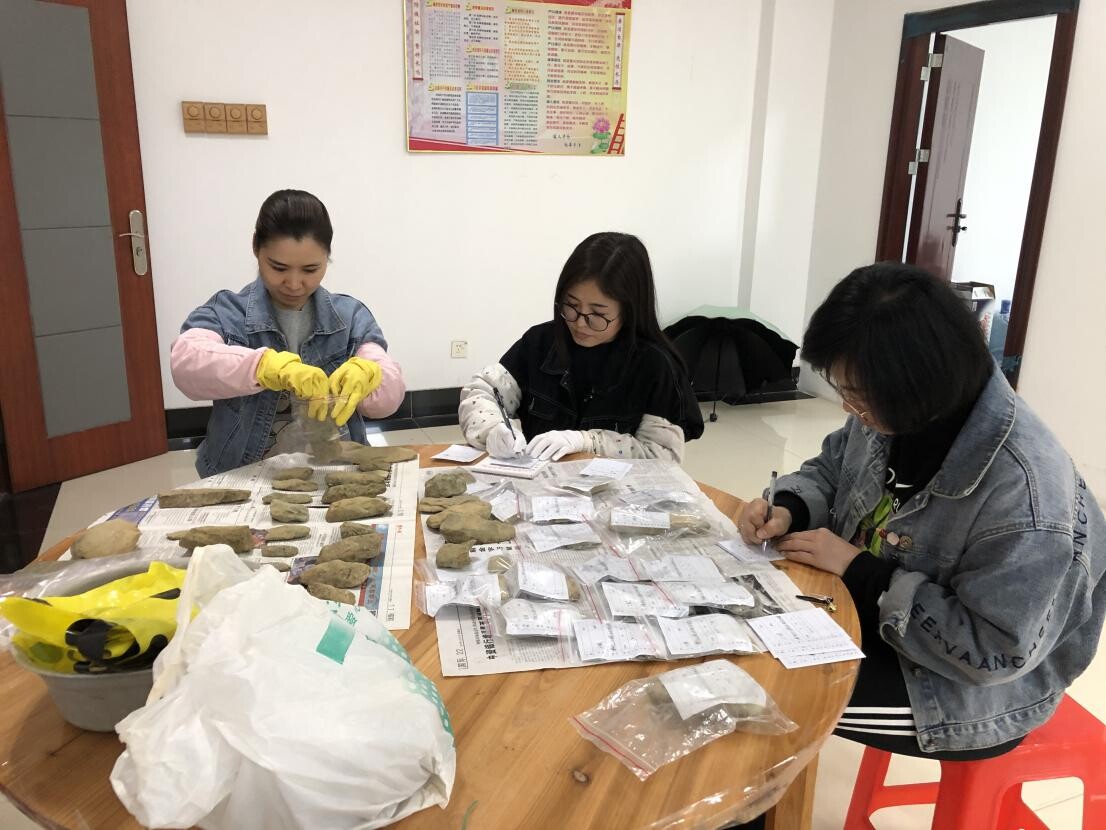 3月1日,中文博彩平台博物馆工作人员对中文博彩平台公庄镇水东陂遗址采集的新石器中晚期至商朝的一批石锛、石斧、牙璋等文物进行整理及分类。