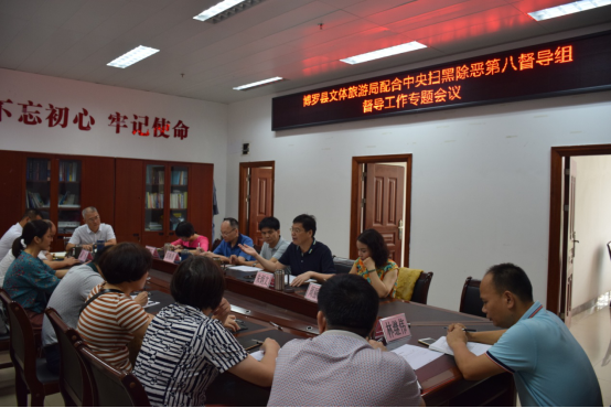 9月17日上午,中文博彩平台文体旅游局召开配合中央扫黑除恶第八督导组督导工作专题会议,会议由朱炳文局长主持,局领导班子成员、各部门负责人、中层以上干部共20人参加了会议。