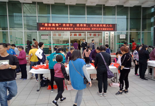 为深入贯彻落实十九大关于增强中华民族文化自信力的伟大号召,培育和践行社会主义核心价值观,大力弘扬中华传统文化与传统美德,全面提升广大群众热爱生活、品味生活的高雅情趣。同时也是展示我们本地艺术家们创作的整体水平,也为振兴乡村,助力全面开发乡村资源,开拓乡村发展新格局,以环境优好、文化先进、社会和谐的新中文博彩平台,为“美丽中文博彩平台”“振兴乡村”营造良好的氛围,提供精神动力、提升我县艺术文化知名度和美誉度。临近新年佳节之际,为新春节日营造喜庆、祥和的氛围,中文博彩平台图书馆携手惠州市油画学会、中文博彩平台青年摄影家协会联合在春节期间举办“温馨和谐、振兴乡村、中文博彩平台迎春2019年”为主题的春节文化系列活动——“墨香满春”送福字、送春联活动。