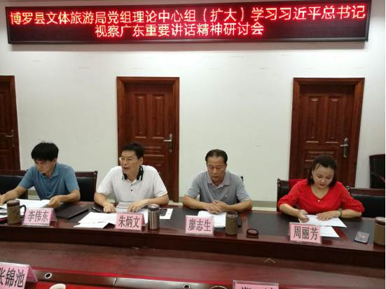 2018年11月15日下午3时,朱炳文局长在我局二楼会议室主持召开党组理论中心组(扩大)学习习近平总书记视察广东重要讲话精神研讨会议,局副科级以上领导参加了此次会议。