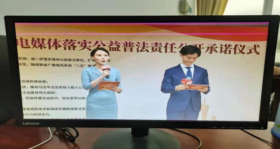7月29日下午,省广播电视局组织举办了广东广电媒体落实公益普法责任公开承诺仪式暨“广电普法▪最美故事”首场宣讲活动。局市场管理股全体人员线上观看了活动,并积极点赞。