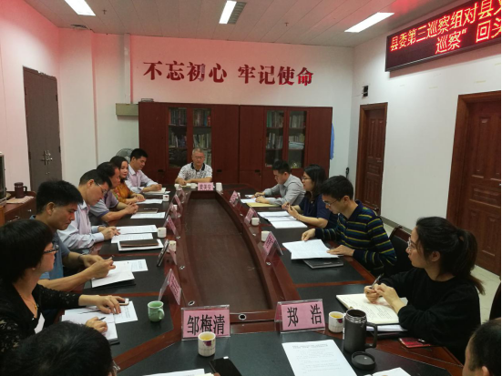陈智广组长宣读了《关于对县文化广电旅游体育局党组开展巡察“回头看”工作情况的反馈意见》,在充分肯定上一轮巡察整改工作的基础上,客观指出了遗留的问题和巡察“回头看”发现的新问题,并提出相应的整改意见建议:一是要进一步提高政治站位,从坚决践行“四个意识”,坚定“两个维护”的高度加强党的建设;二是要强化内部管理,进一步夯实全面从严治党的基石。
