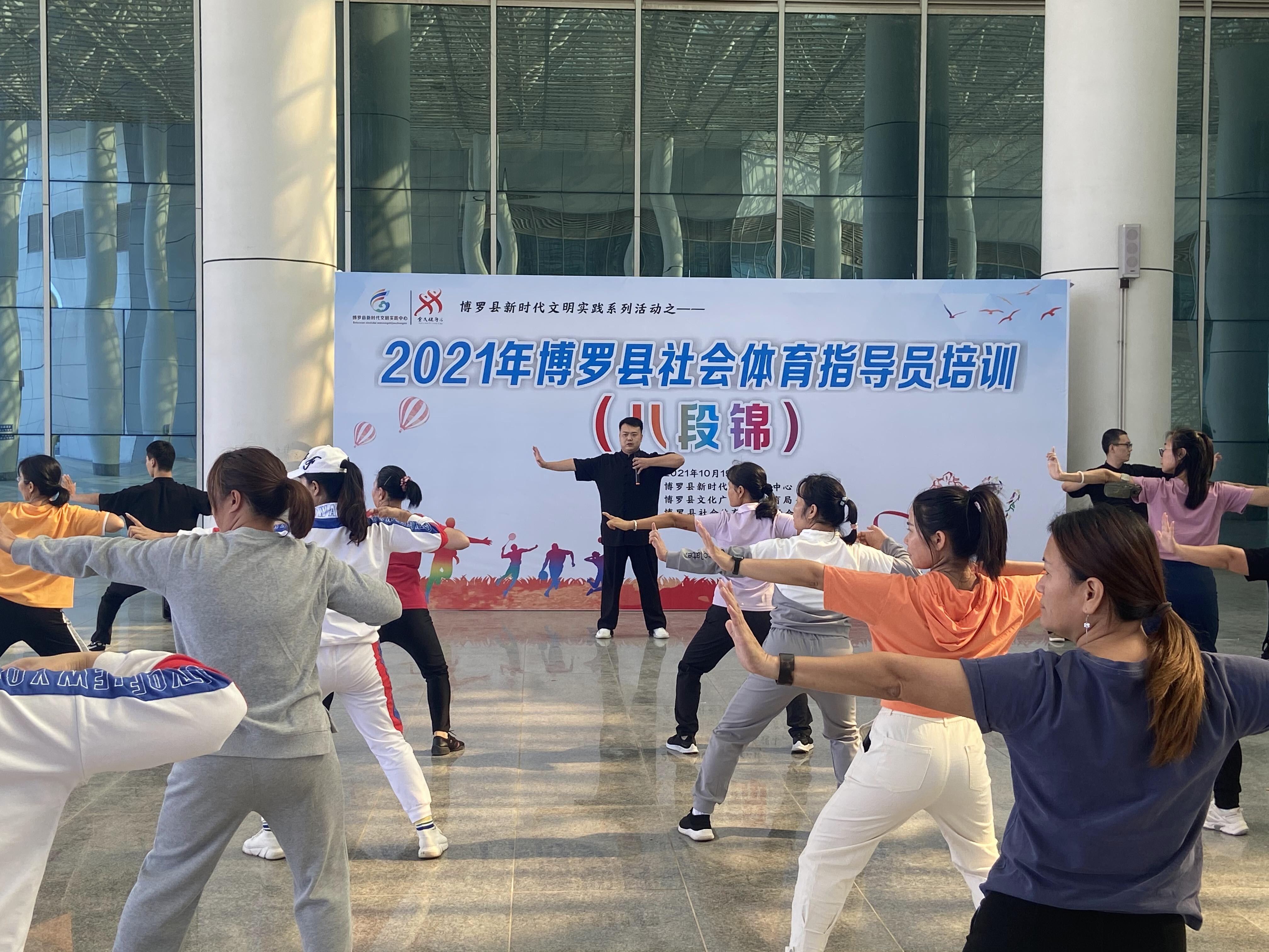 为普及我县全民健身运动深入开展,认真贯彻落实《全民健身条例》和《全民健身计划纲要》,实施公共体育服务,奉行“奉献、服务、健康、快乐”的宗旨,为广大群众提供科学、便捷、高效的健身技能指导,提高全县人民身体素质,10月19日-22日,2021年社会体育指导员八段锦培训在县体育中心体育馆举行。19日上午开班前,举办了启动仪式,县文化广电旅游体育局党组成员、四级调研员郑浩、县文化广电旅游体育局体育股股长黄绮敏、县陈氏太极拳协会会长马超出席了活动。启动仪式由县文化广电旅游体育局党组成员、四级调研员郑浩同志致词。