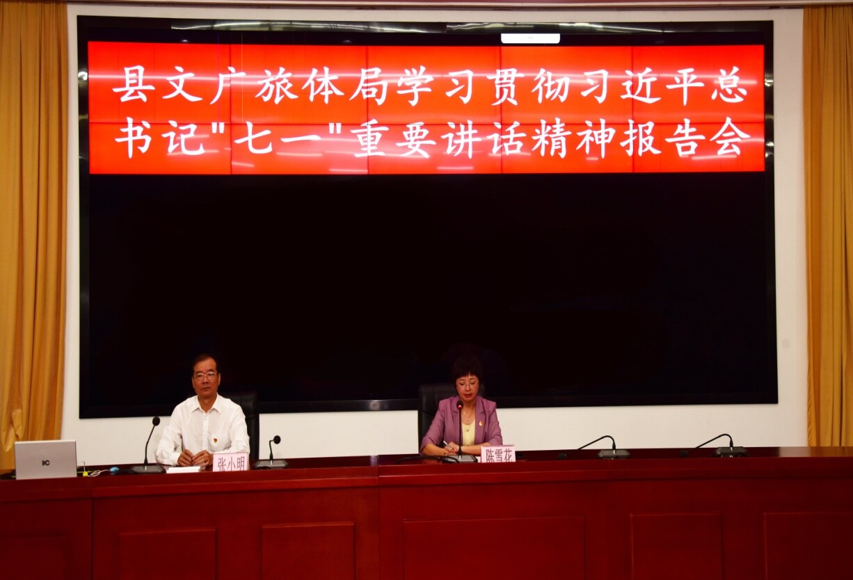 为贯彻落实习近平总书记“七一”重要讲话精神,进一步推动党史学习教育走深走实,10月28日,中文博彩平台文化广电旅游体育局学习贯彻习近平总书记“七一”重要讲话精神报告会在县文化中心多功能会议室举办,中文博彩平台文化广电旅游体育局全体干部职工参加报告会。