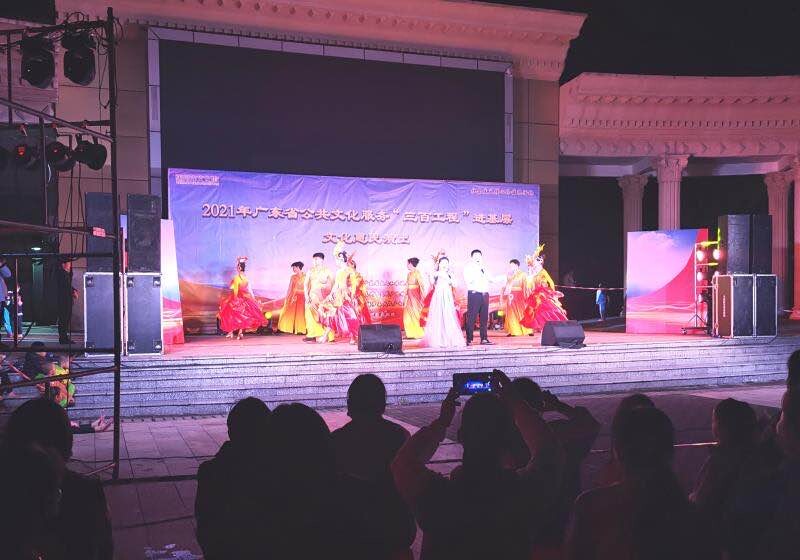 10月25日,2021年广东省公共文化服务“三百工程”进基层文化惠民演出在麻陂镇文化广场精彩上演,陈雪花局长、谢文山副局长和现场近千名群众共同观看演出。