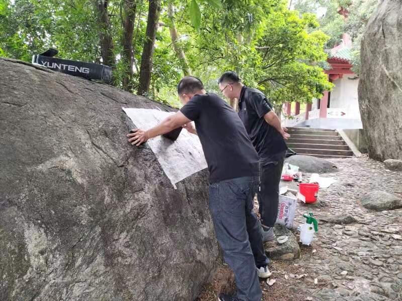 10月27日,县博物馆工作人员对罗阳街道梅花村文化古迹景点文物保护单位——锣鼓石摩崖石刻进行了拓片工作,拓片真实的再现了古代书法艺术的神韵,记录了宝贵的历史资料。