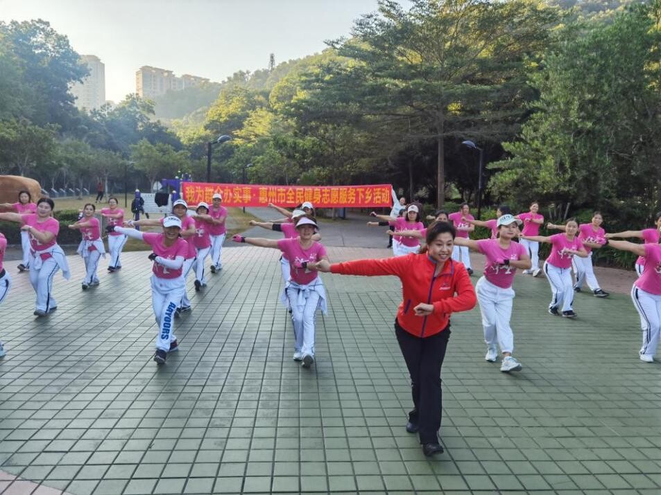 11月29日,惠州市文化广电旅游体育局主办的“我为群众办实事·惠州市全民健身志愿服务下乡活动”在我县人民公园、东山公园举办,分别进行了健身气功、广场舞排舞培训。