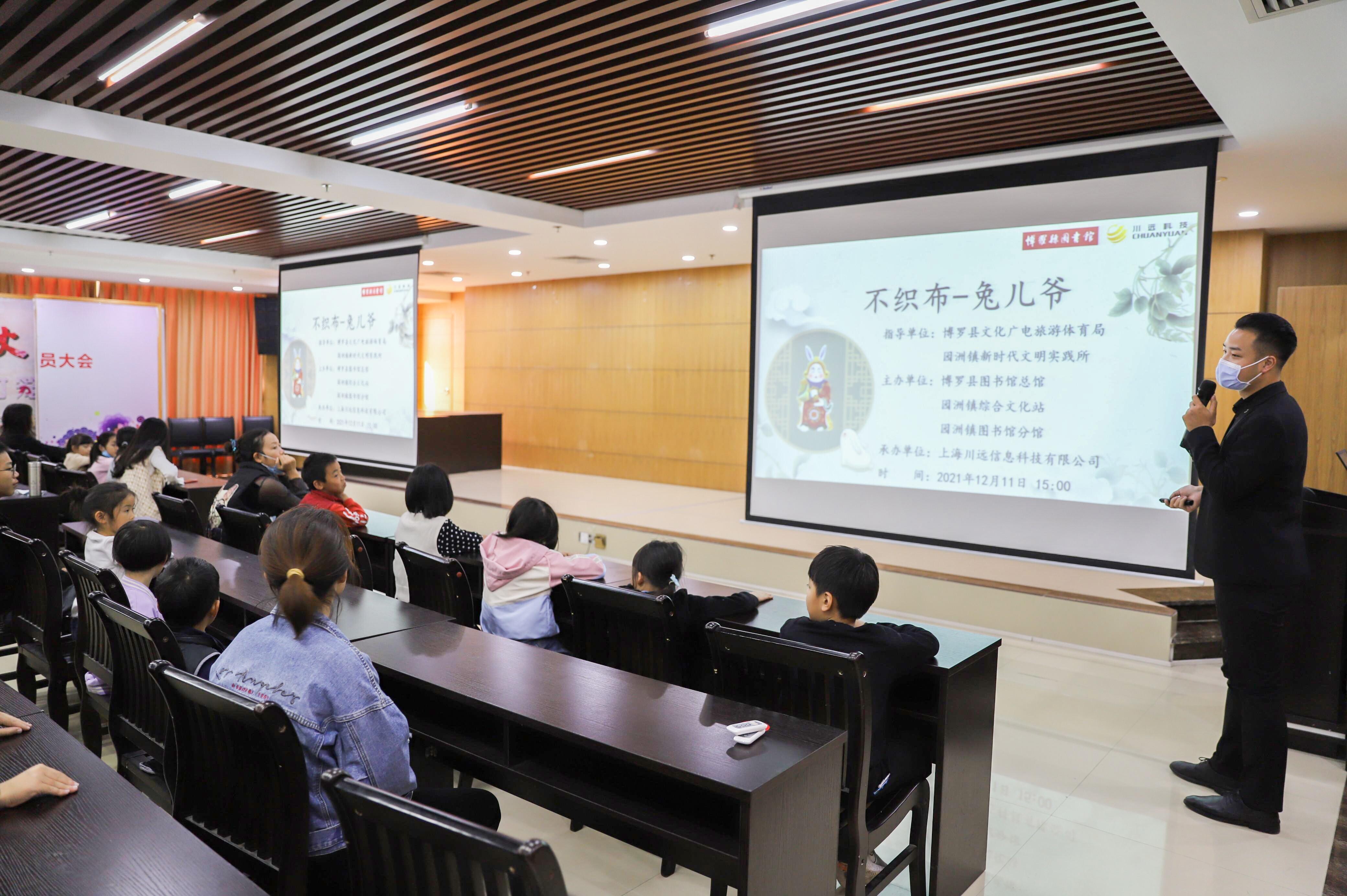 2021年12月11日,中文博彩平台图书馆联合园洲镇综合文化站、园洲镇图书馆在镇文化中心二楼多功能会议室开展“兔儿爷”不织布手工活动,约60人参加活动。