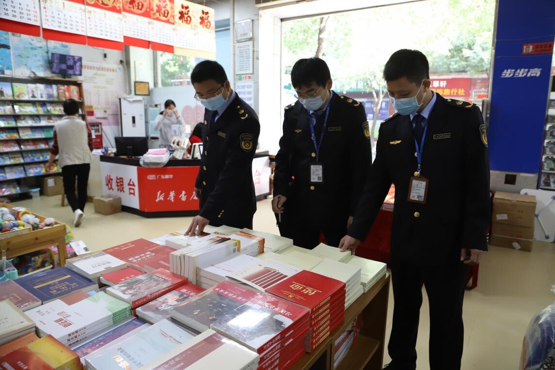 12月9日,执法大队组织执法人员前往罗阳街道,开展校园周边出版物市场经营单位执法检查工作,在检查过程中,执法人员抽查相关书籍,用专业的软件进行扫描,未发现有假冒伪劣盗版书籍,执法人员现场要求业主做好消防、疫情防控等工作。