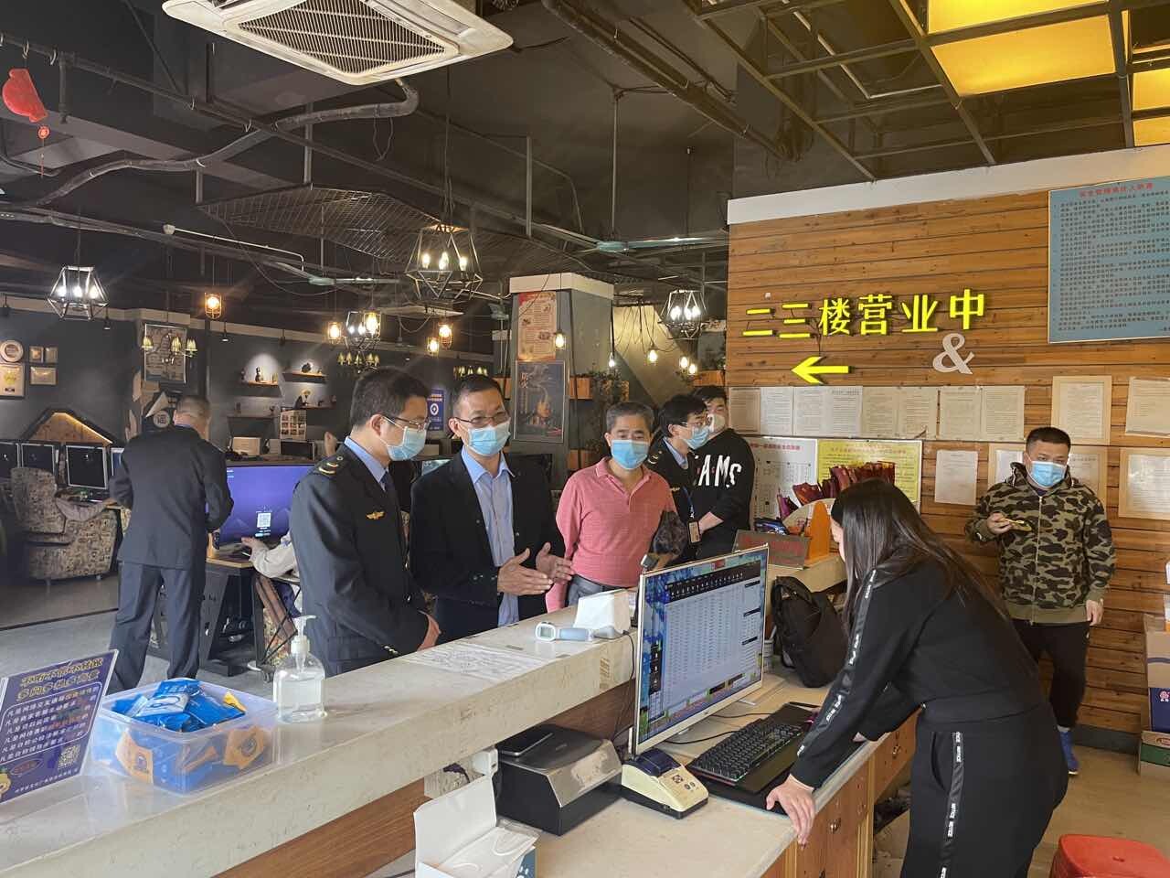 12月16日,为进一步加强全区文化市场疫情防控工作落实,我局党组成员李卫明带领疫情防控第五小组人员前往湖镇镇、长宁镇开展疫情防控检查工作。检查过程中,发现个别网吧存在粤康码设置标识不明显,人员未扫粤康码、未量体温入场等疫情防控不到位问题,检查人员现场责令其立行立改,并按要求做好疫情防控工作。