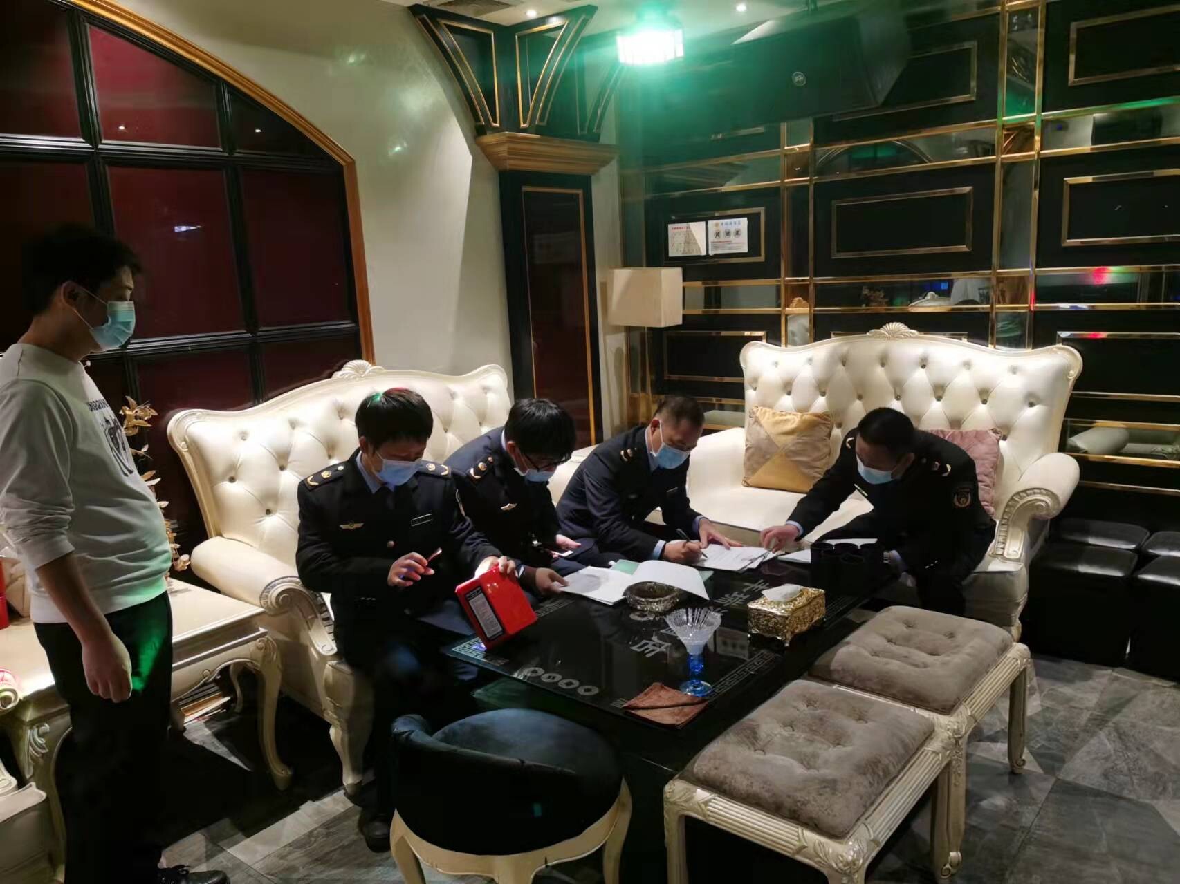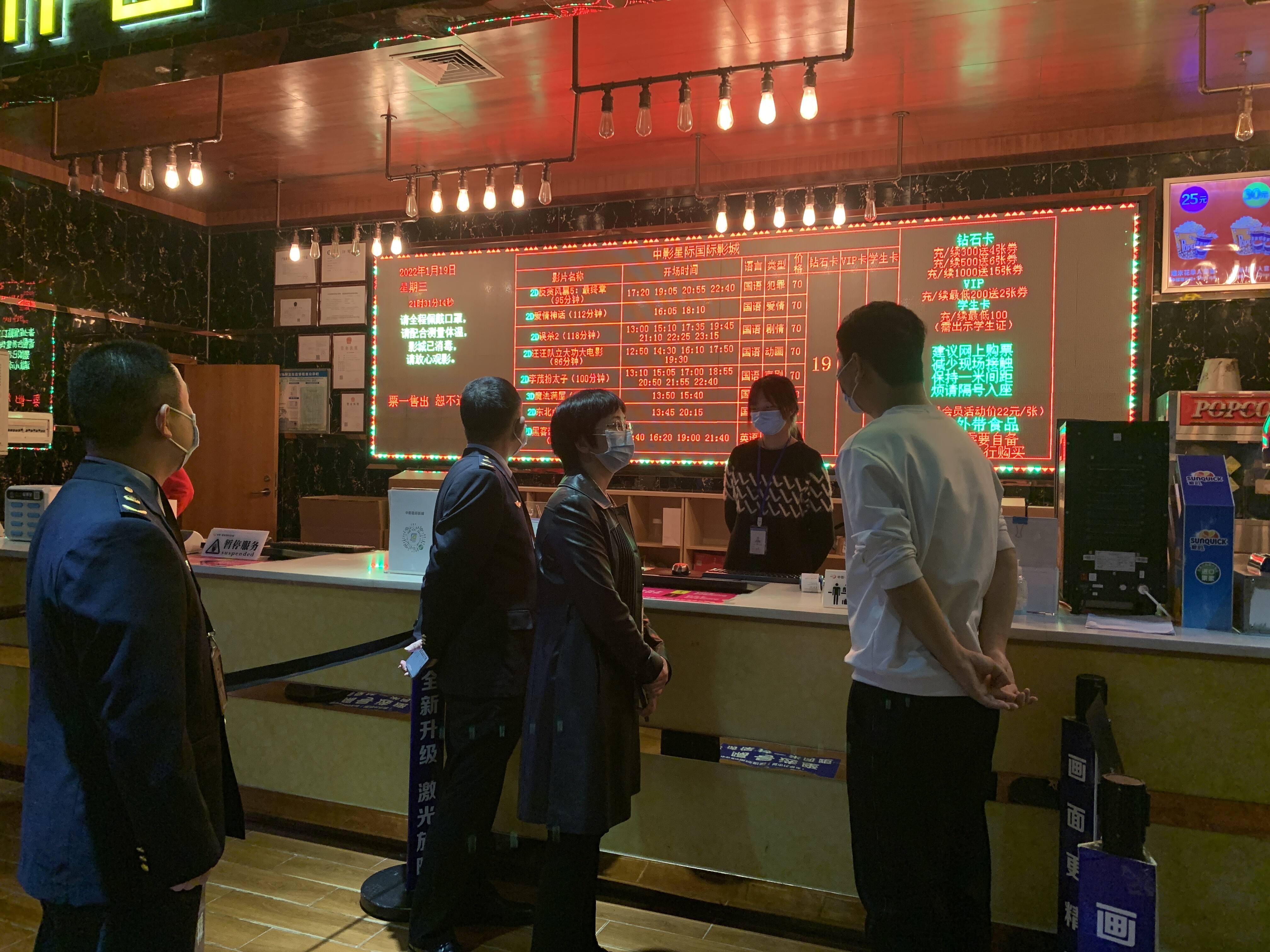 1月19日,党组书记、局长陈雪花带领市场管理股工作人员前往罗阳街道,对歌舞娱乐场所、网吧、电影院开展疫情防控检查工作。